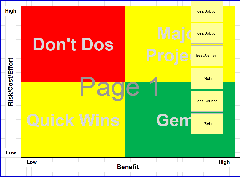 Tools like the Priority Matrix will help consider the impacts of the brainstormed solutions and help with prioritizing the ideas.